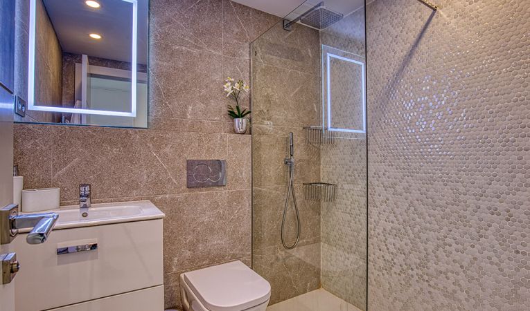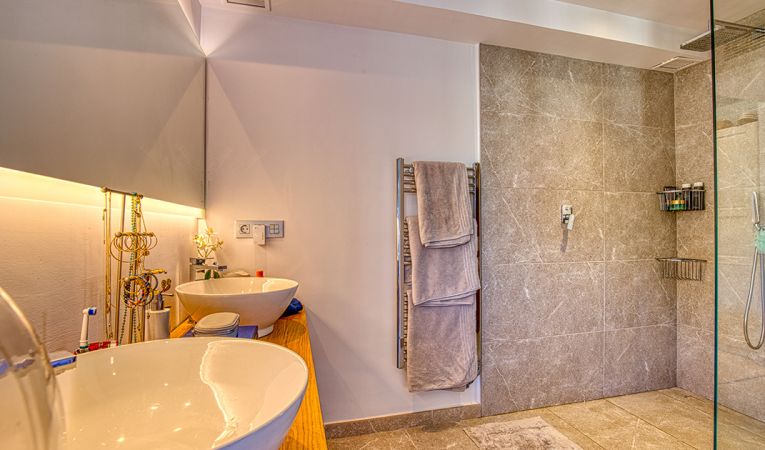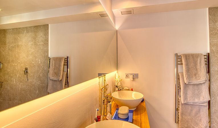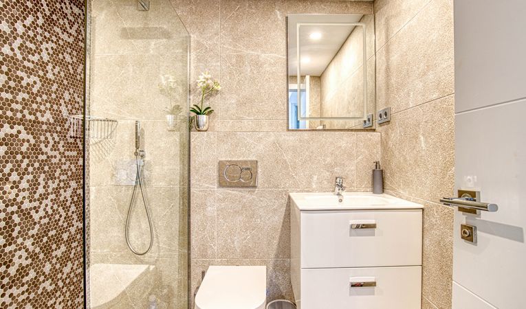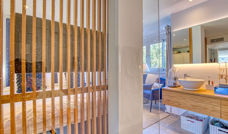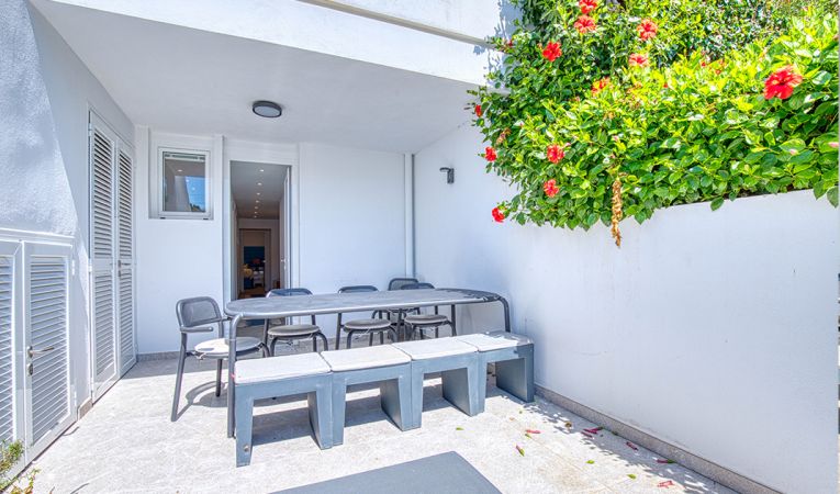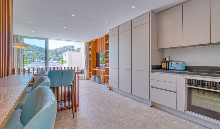 Confort y comodidades modernas: Equipado con aire acondicionado y calefacción por suelo radiante en todos los cuartos de baño, el piso ofrece comodidad durante todo el año. La terraza inferior cuenta con una cocina exterior integrada con barbacoa, perfecta para entretener a los invitados.
